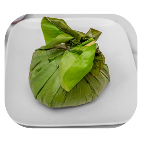 A royal Malabar delicacy! Fluffy kaima rice and juicy chicken wrapped in banana leaf, layered with ghee, masala and